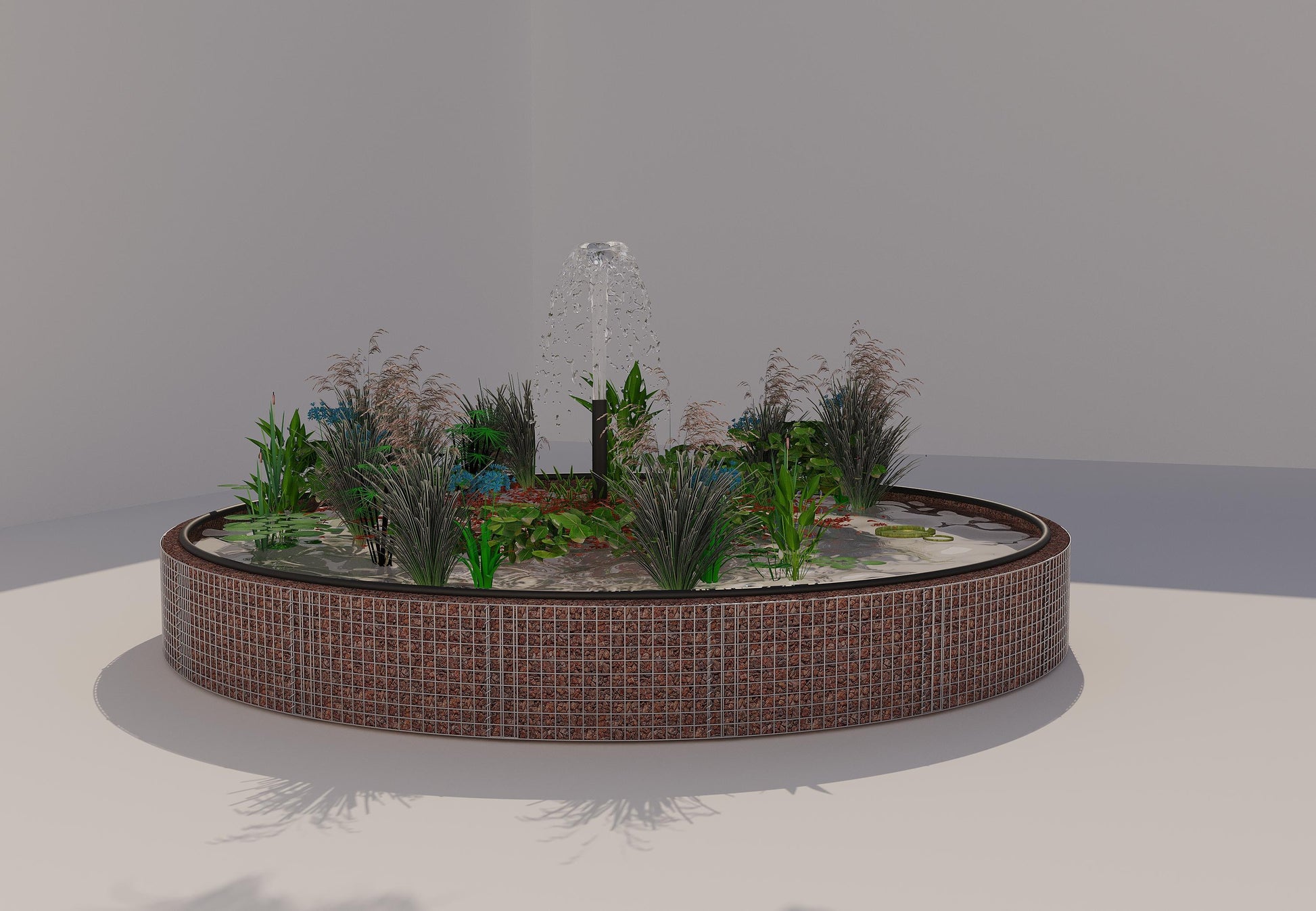 Gabion-højbassin - Elegant rundt design med fleece og bassinforing