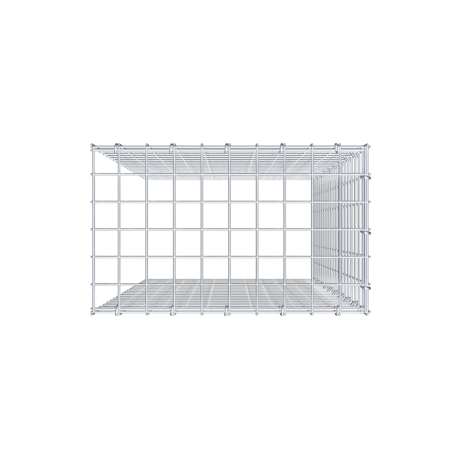 This gabion is missing a front and bottom grille. This allows your gabion to grow both in length and height.
