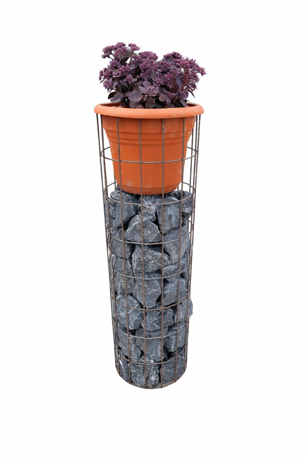 Blumensäule - 80 cm hoch - Ø 24 cm - rostige Patina Maschenweite 5 x 10 cm - inkl. Blumentopf