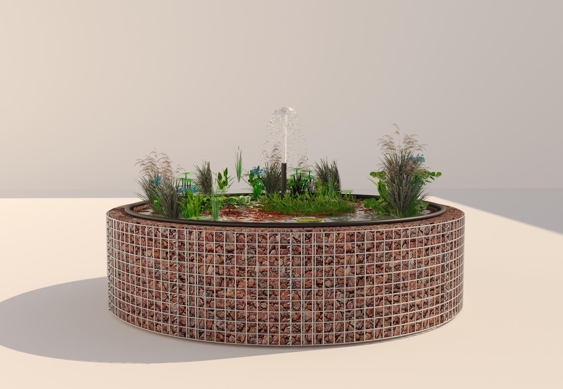 Gabion raised pond - Elegant round design with fleece & pond liner