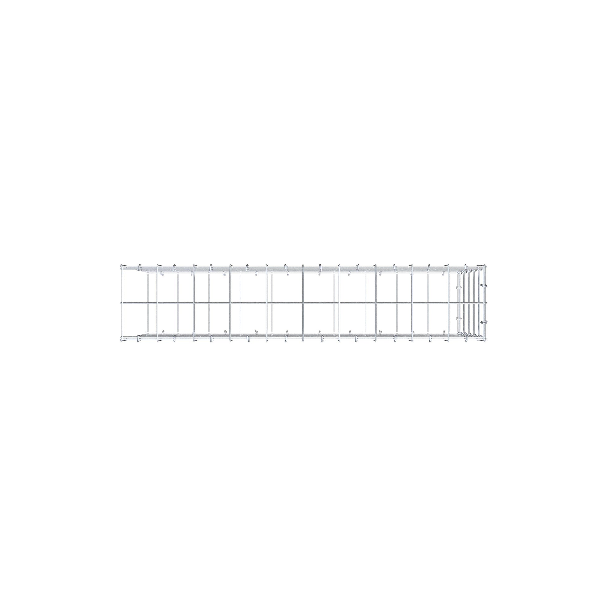 Bei dieser Gabione fehlt ein Stirngitter. Das ermöglicht Ihrer Gabione in die Länge zu wachsen.