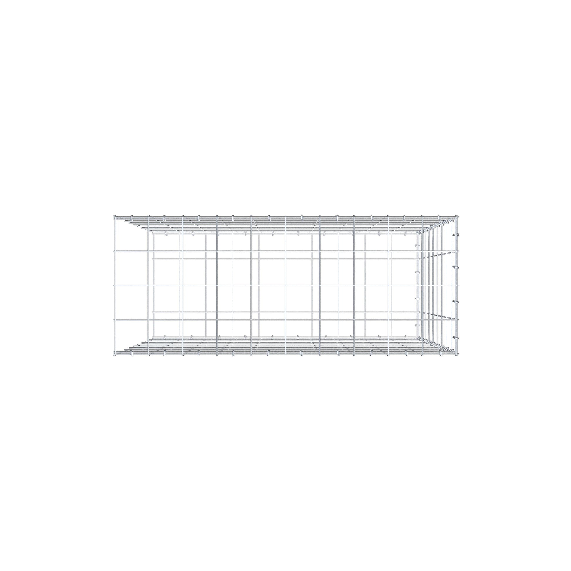 Bei dieser Gabione fehlt ein Stirngitter. Das ermöglicht Ihrer Gabione in die Länge zu wachsen.
