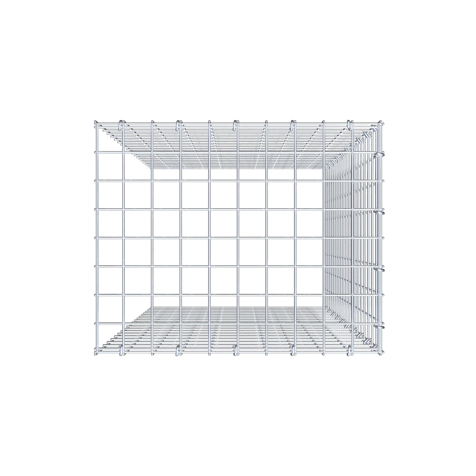 Bitte beachten Sie, dass die Anbaugabione die gleiche Tiefe besitzt wie die neben- und untenstehenden Gabionen.
