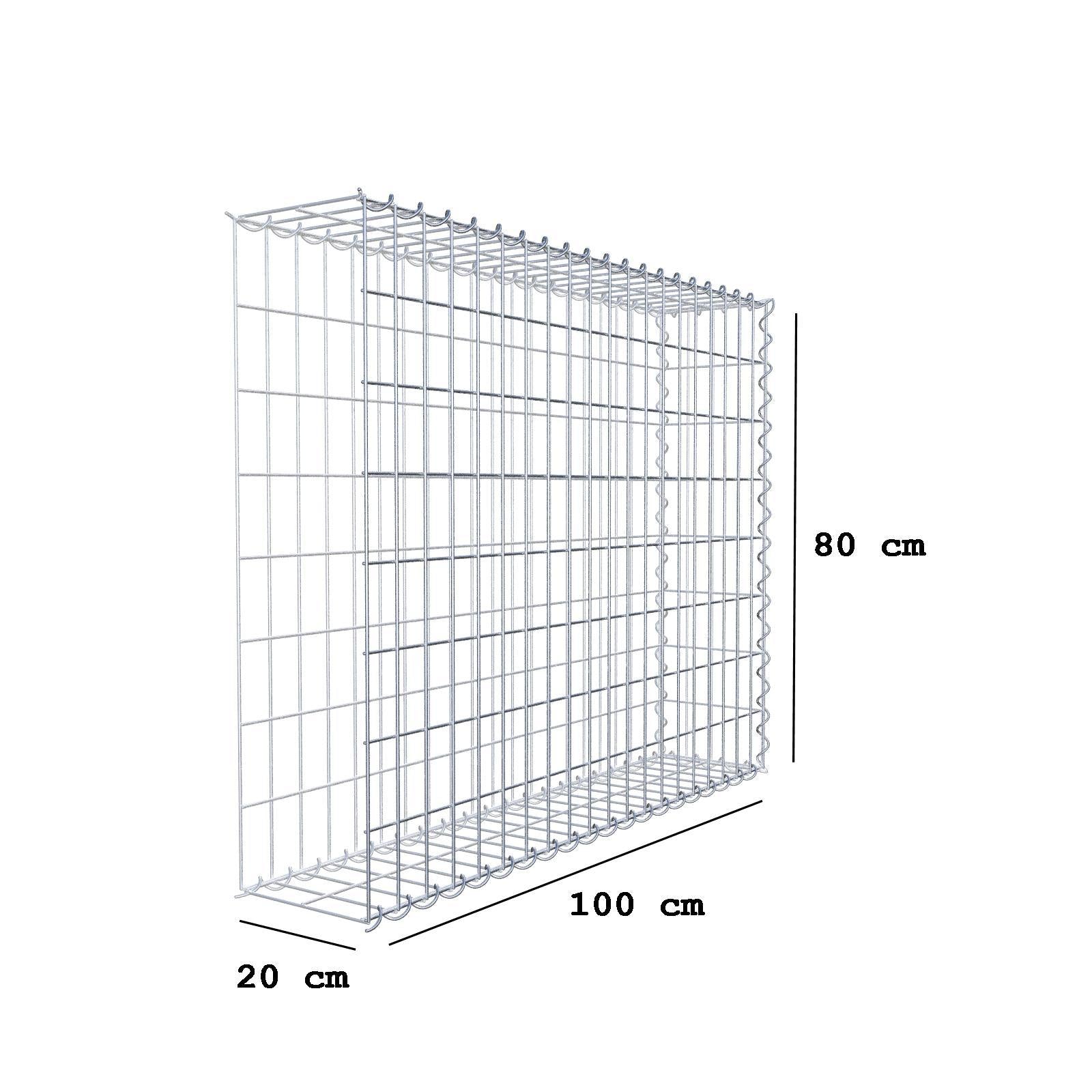 Gabion rapporté type 2 100 cm x 80 cm x 20 cm (L x H x P), mailles 5 cm x 10 cm, spirale