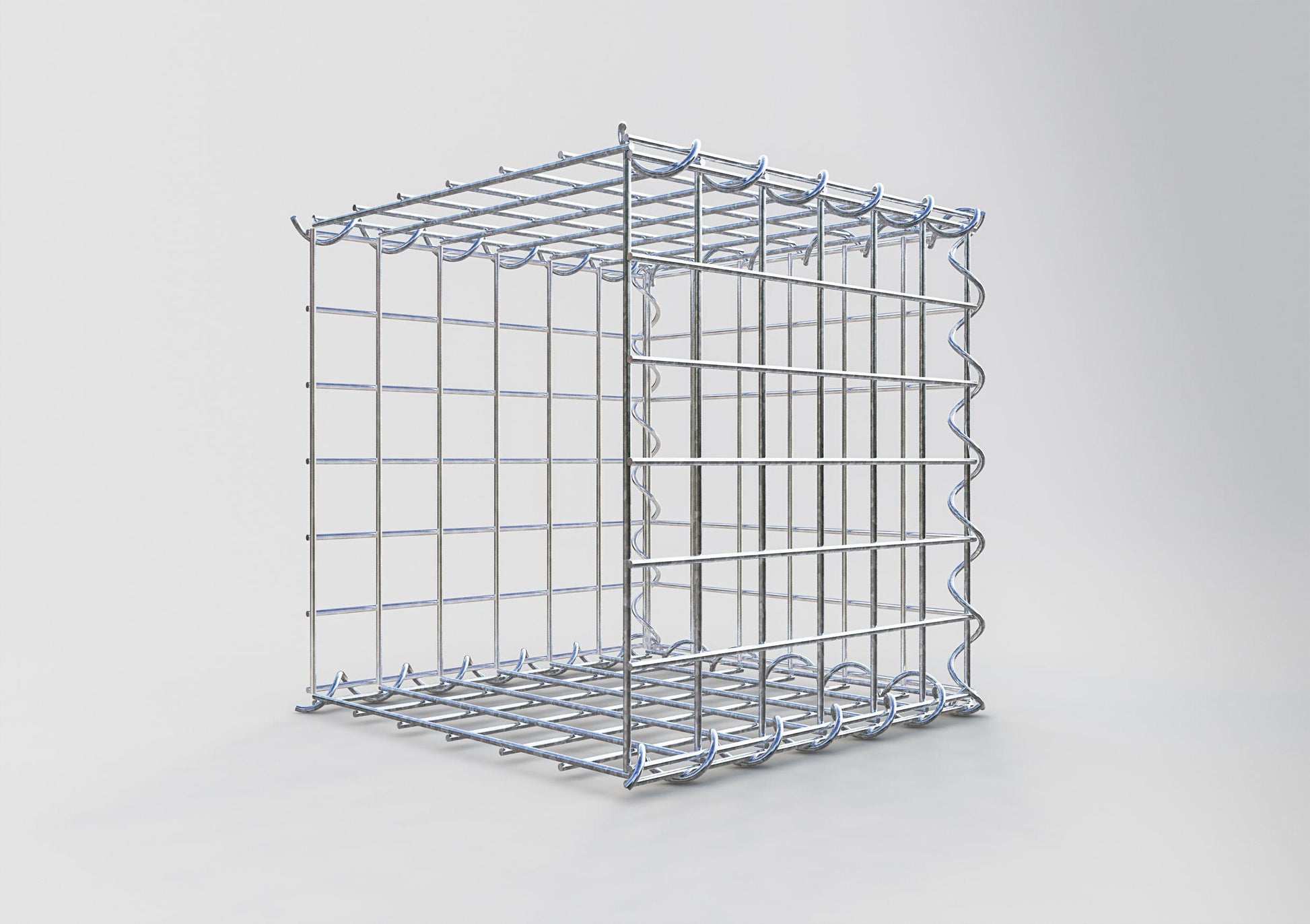 Relie les treillis sans aucun outil - rapidement, facilement et en toute sécurité. Les spirales sont la manière la moins compliquée de construire des gabions stables à partir de nos grillages. Le fil de fer de 4 mm d'épaisseur est plié en forme de spirale et est torsadé à travers les grillages au niveau des bords. Tourne la spirale le long du bord pour que les grillages soient uniformément et solidement reliés entre eux.