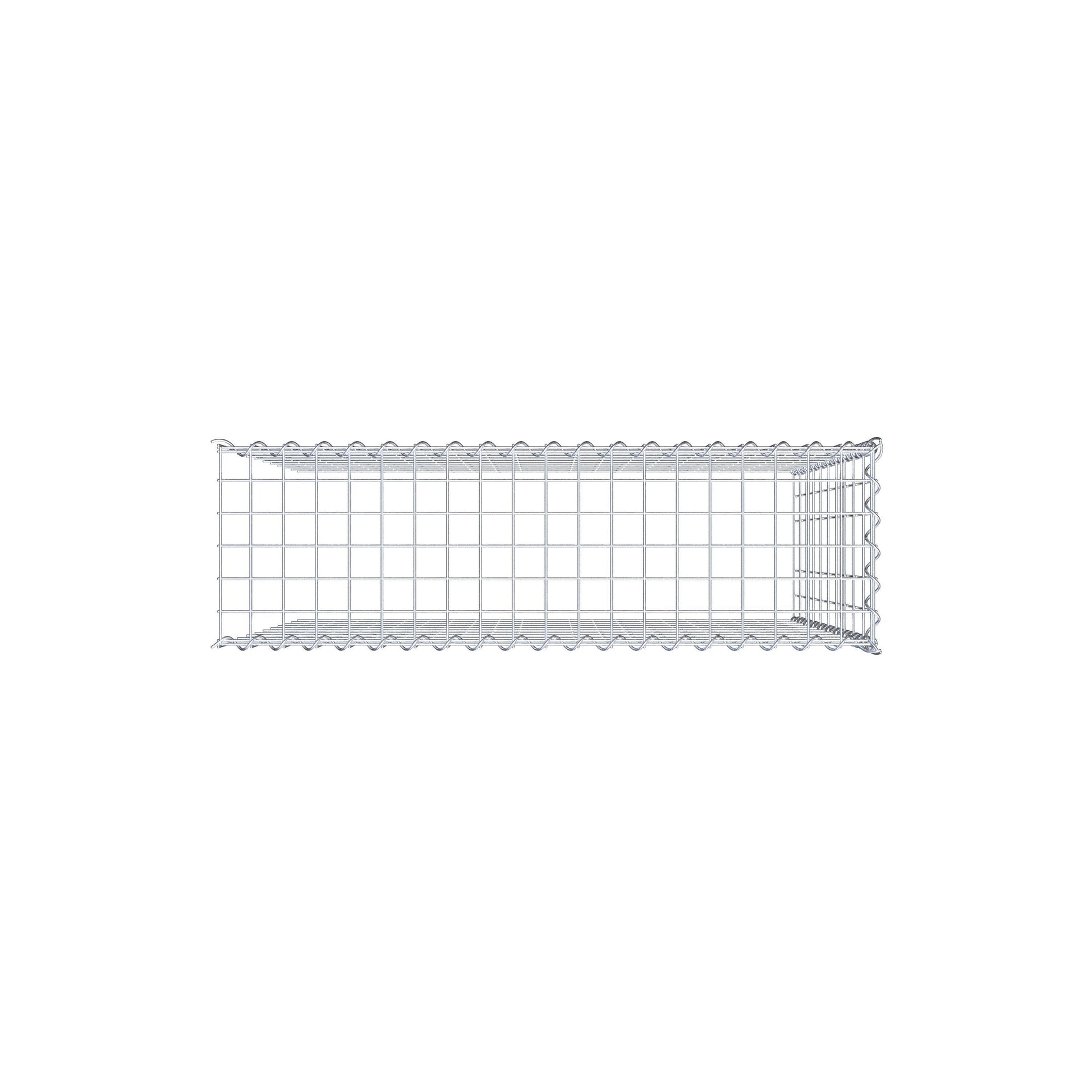 • Remarque : pas de propre grille de fond ni de grille frontale - la liaison se fait par la grille du couvercle et la fermeture du gabion inférieur ainsi que par la fermeture du gabion latéral.
