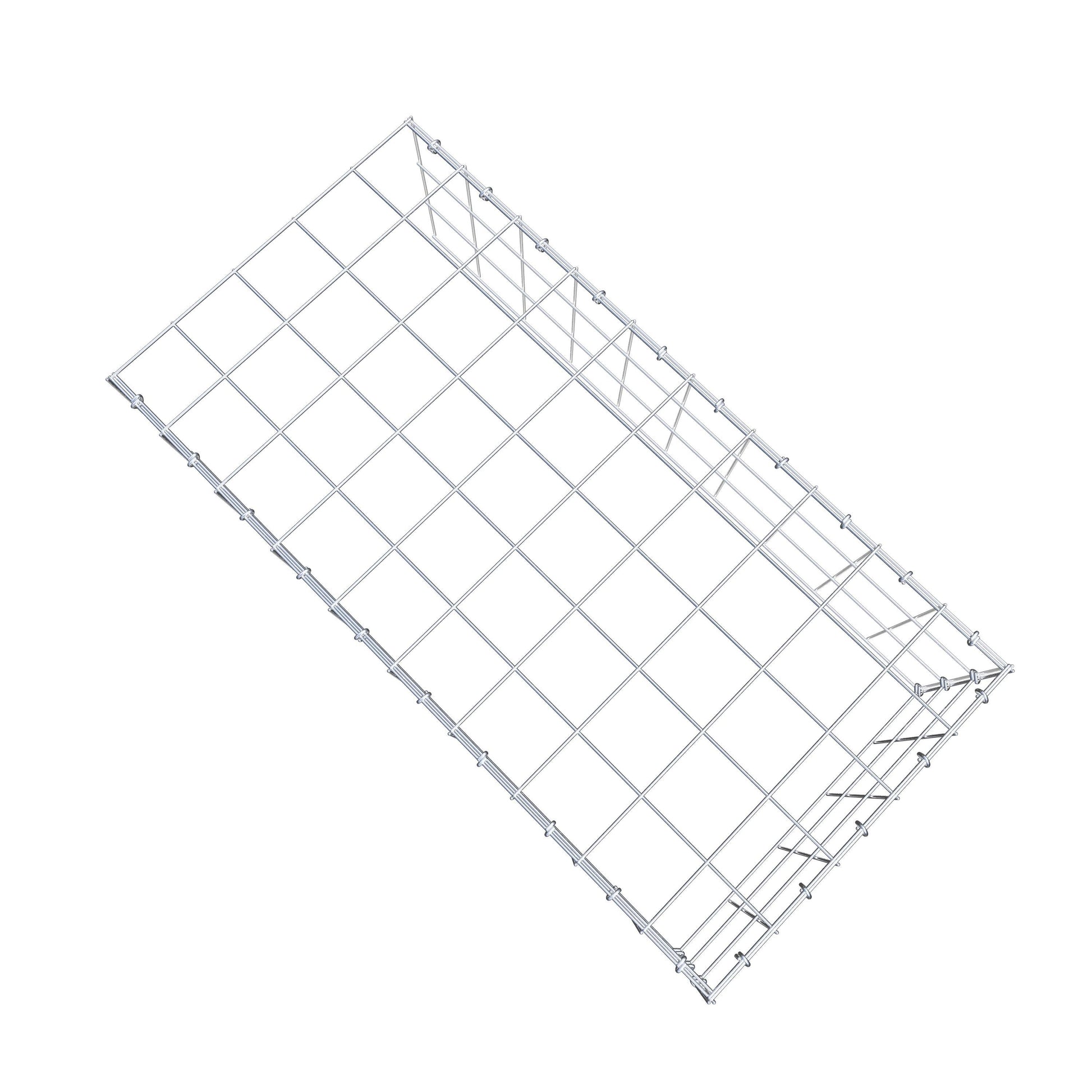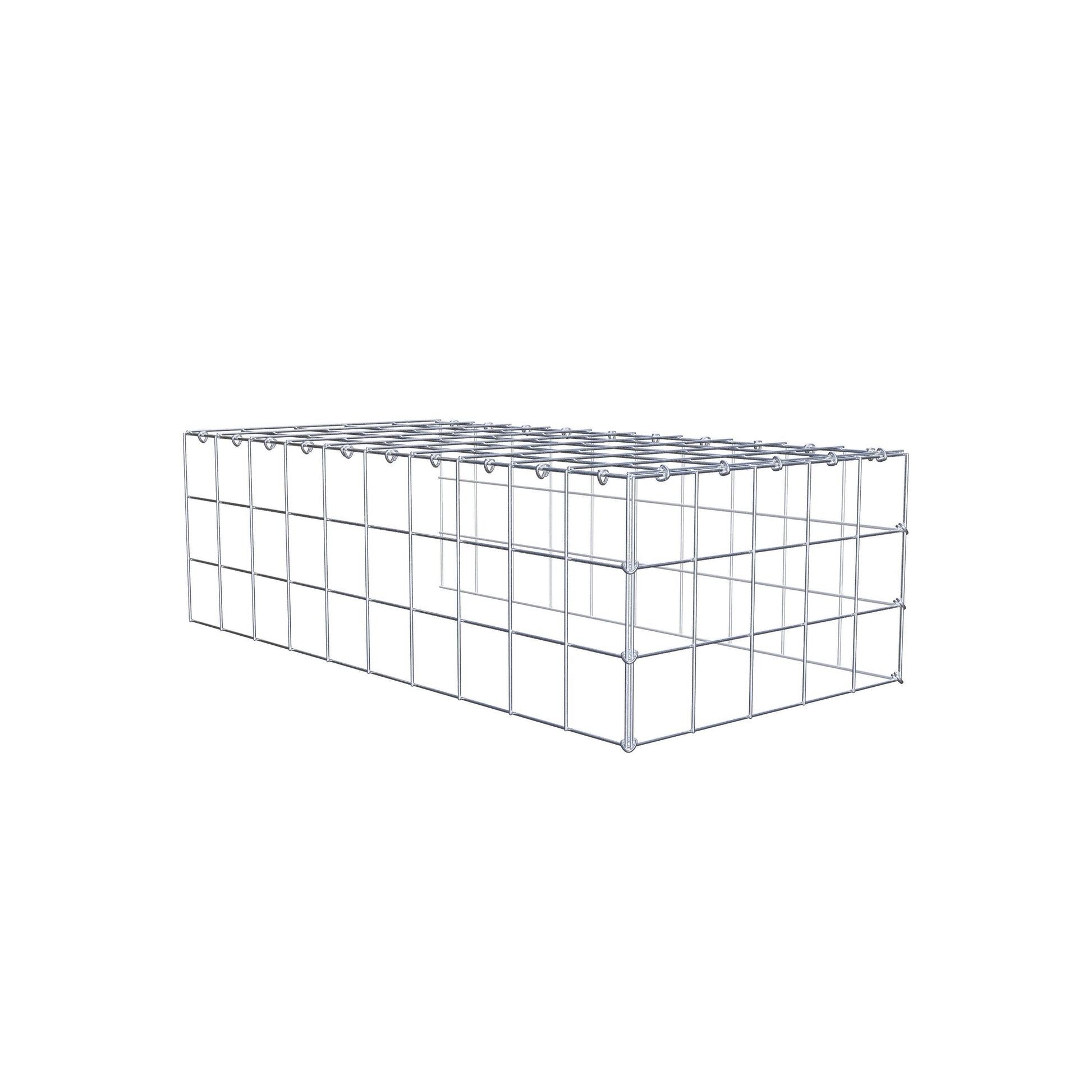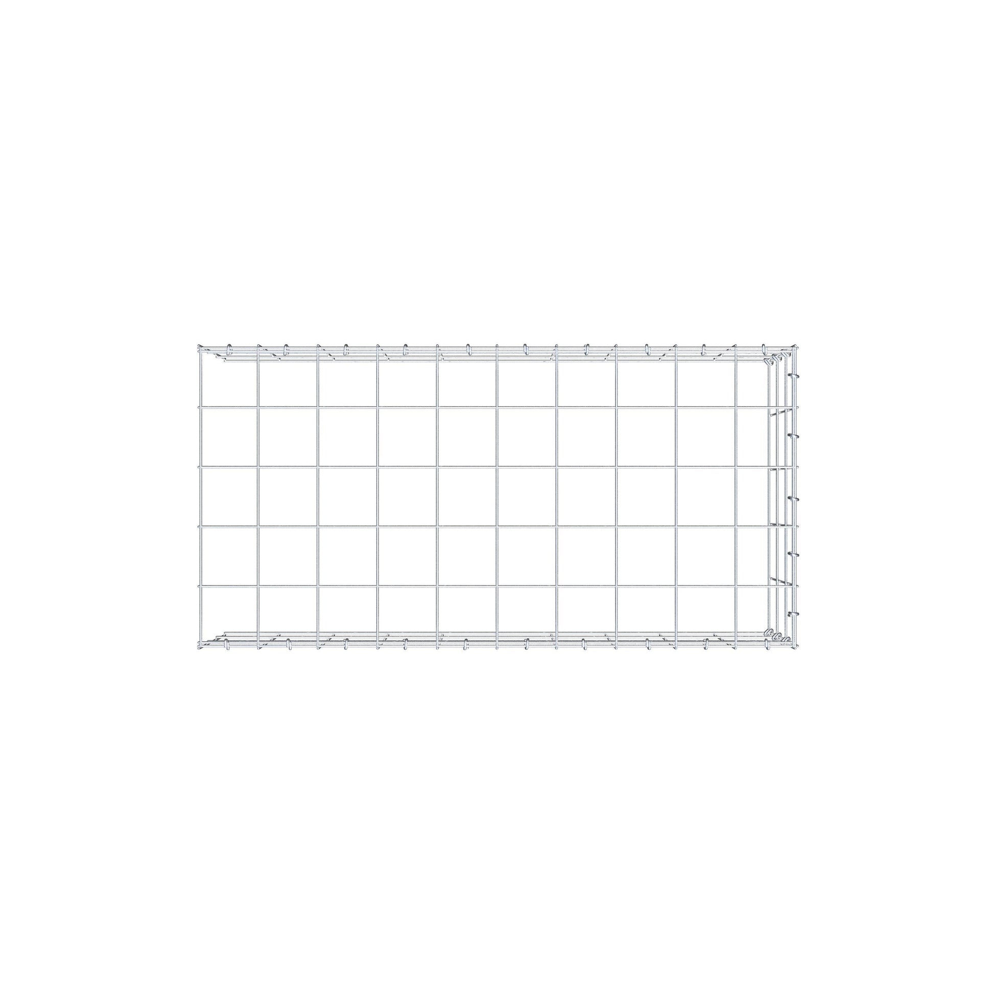 - Remarque : pas de propre grille de fond ni de grille frontale - la liaison se fait par la grille du couvercle et la fermeture du gabion inférieur ainsi que par la fermeture du gabion latéral.