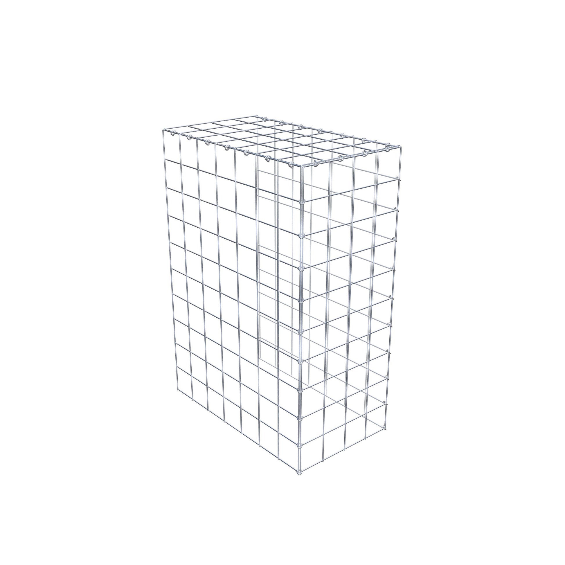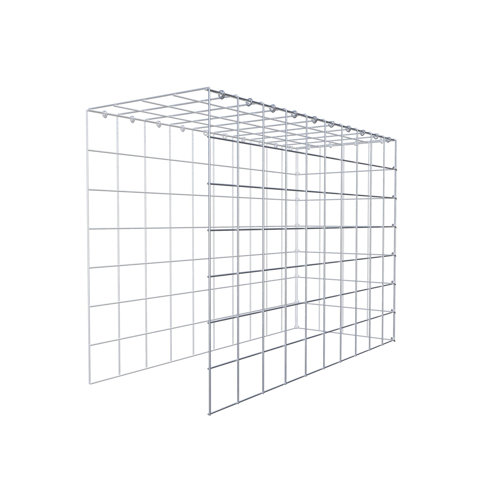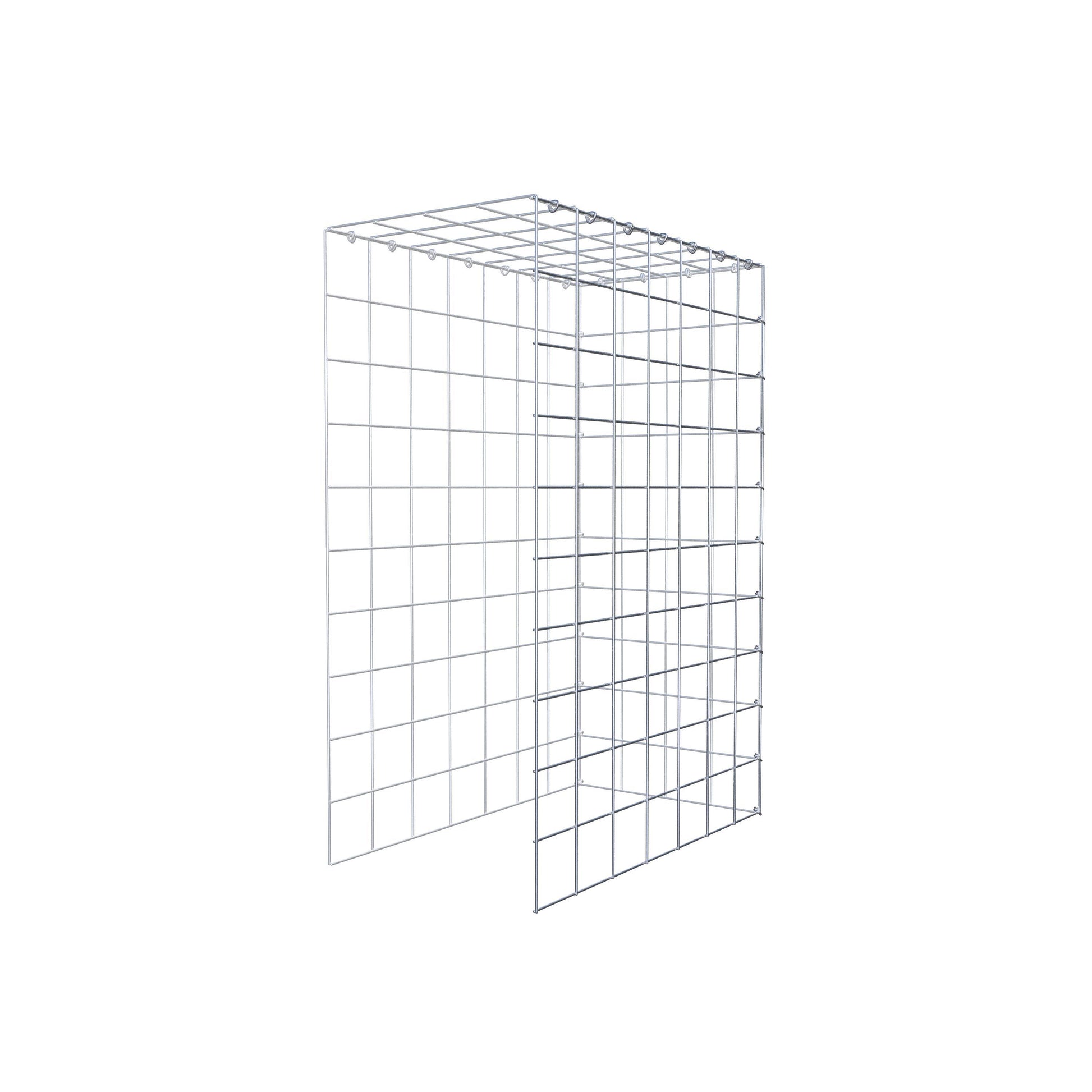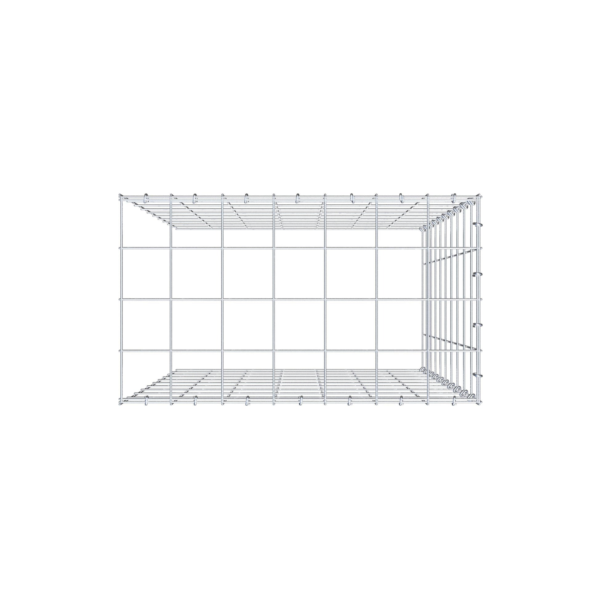 • Remarque : pas de propre grille de fond ni de grille frontale - la liaison se fait par la grille du couvercle et la fermeture du gabion inférieur ainsi que par la fermeture du gabion latéral.