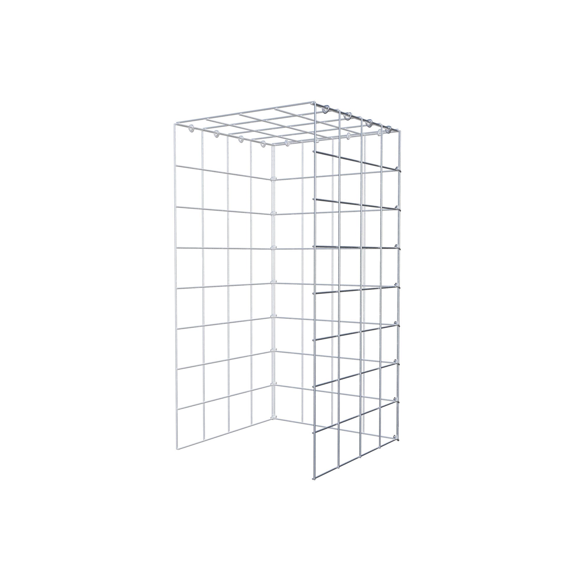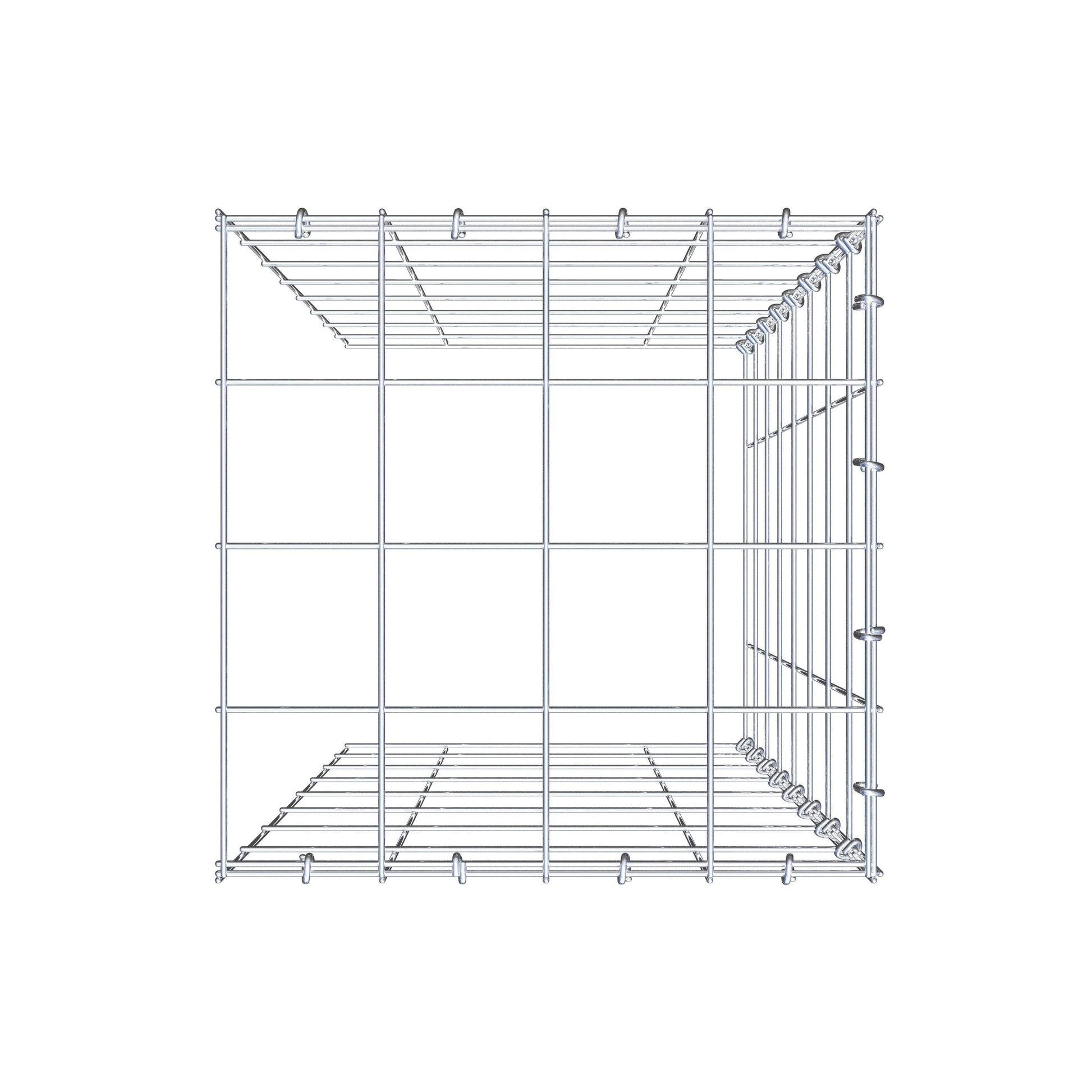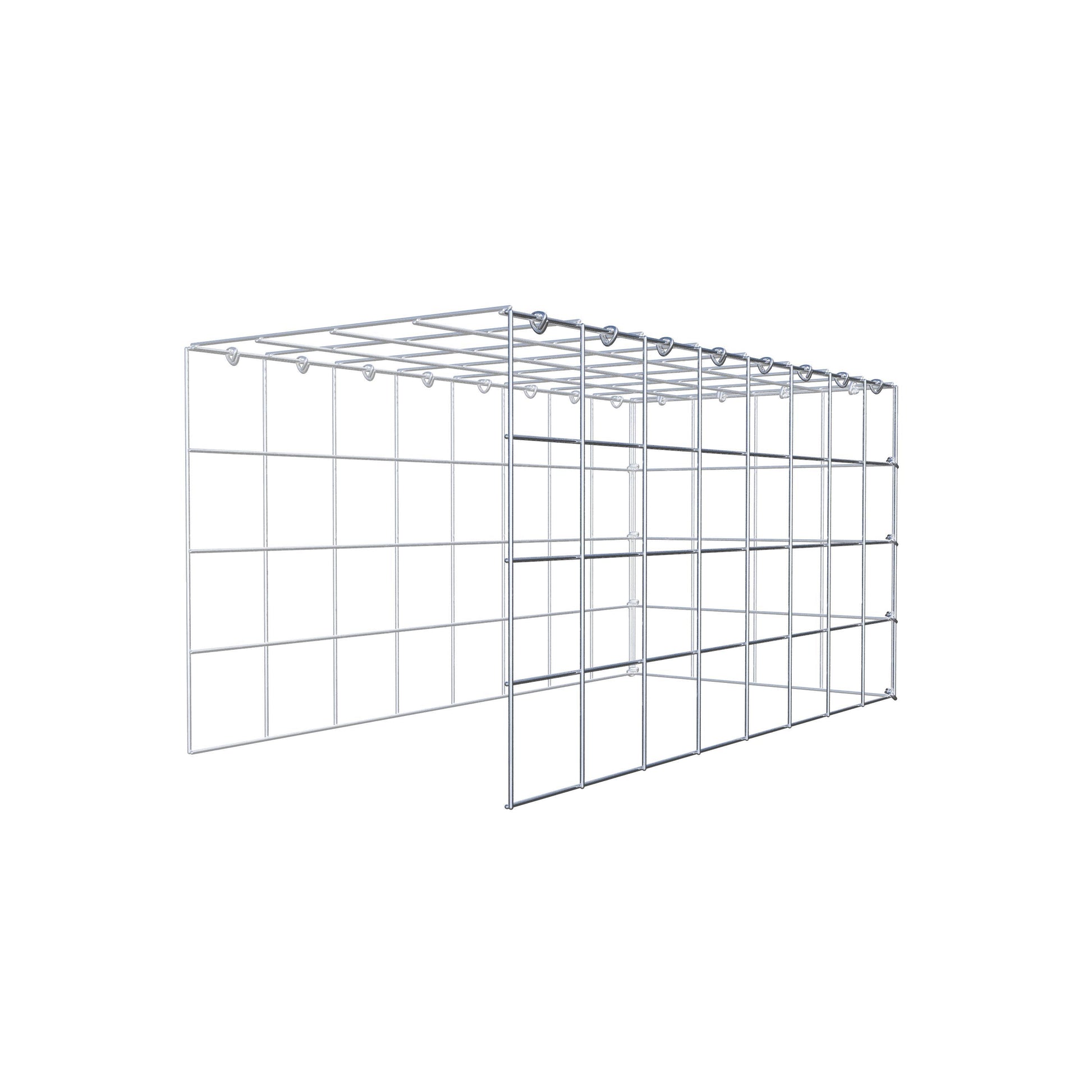 • Remarque : pas de propre grille de fond ni de grille frontale - la liaison se fait par la grille du couvercle et la fermeture du gabion inférieur ainsi que par la fermeture du gabion latéral.