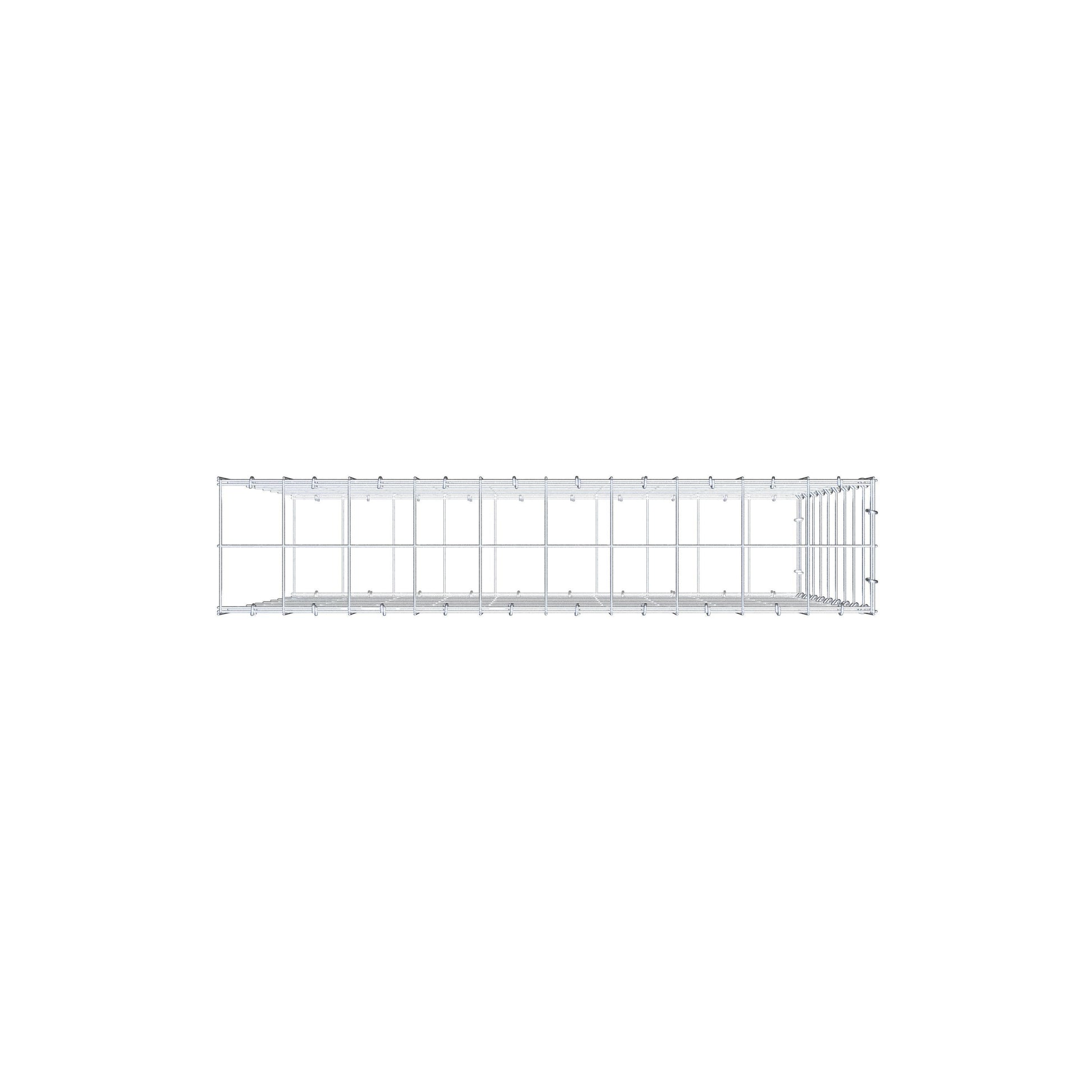 - Hinweis: kein eigenes Stirngitter und kein Verschluss auf dieser Seite – der Anschluss erfolgt über den Verschluss der ersten Gabione.