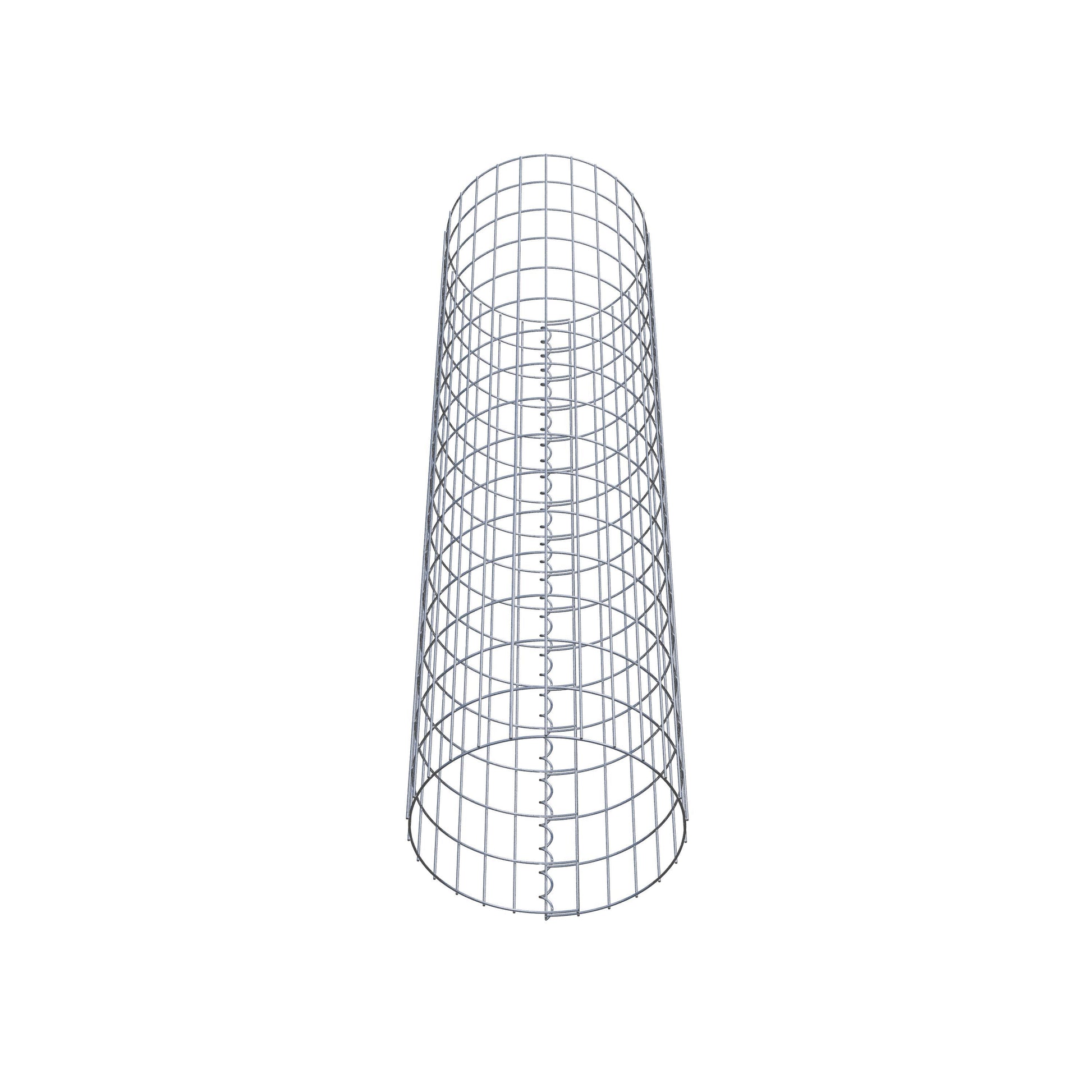 Der seitliche Verschluss erfolgt an der einzigen Überlappungsstelle des Gitters mit einer Spirale, die einfach eingedreht und zusammengedrückt wird. So entsteht eine saubere, sichere und dauerhafte Verbindung. Alternativ kann die Gabionensäule auch mit Klammern verschlossen werden, die separat erhältlich sind. Die Säulen sind nach oben und unten offen – ein Bodengitter oder Deckel ist nicht erforderlich und daher nicht im Lieferumfang enthalten.