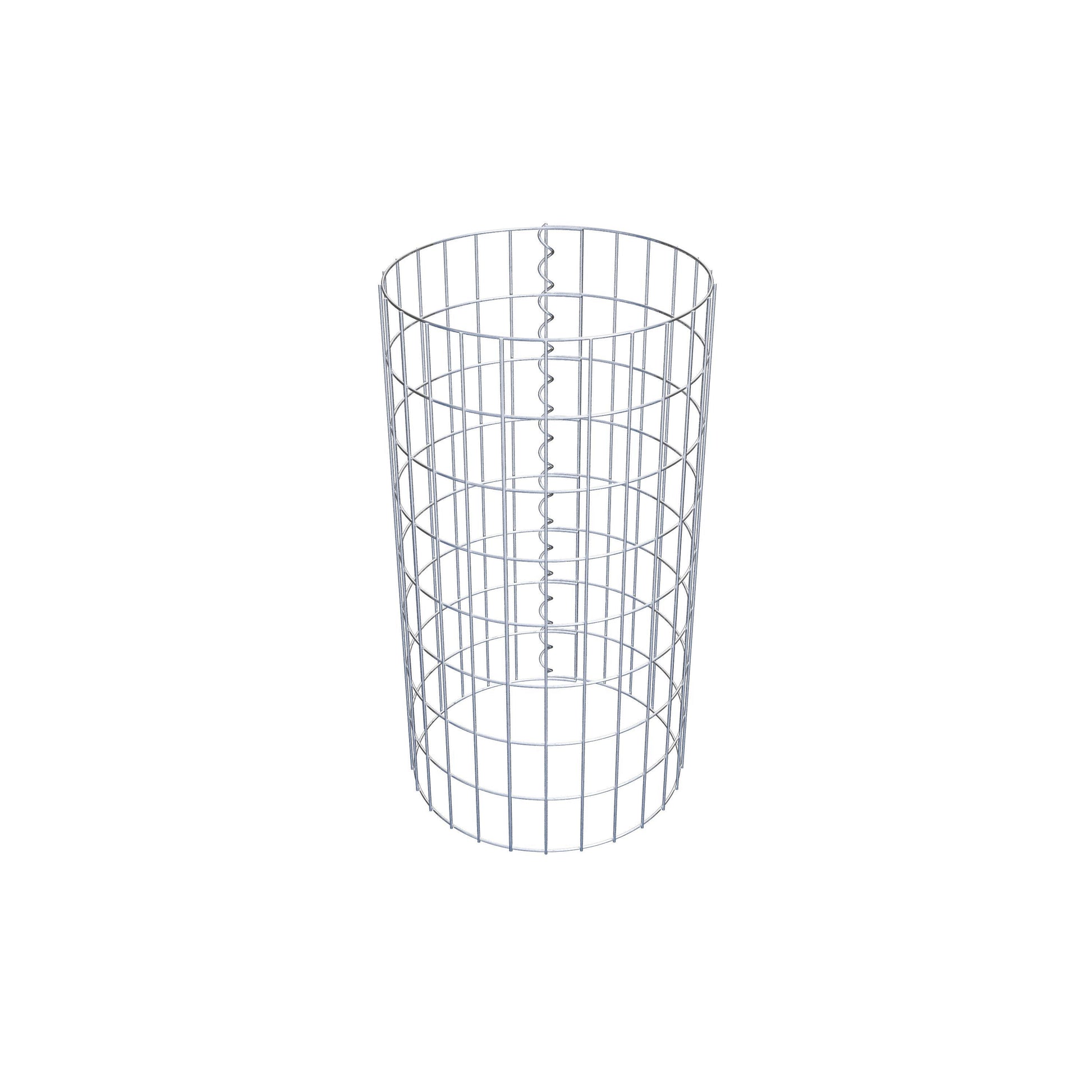 Der seitliche Verschluss erfolgt an der einzigen Überlappungsstelle des Gitters mit einer Spirale, die einfach eingedreht und zusammengedrückt wird. So entsteht eine saubere, sichere und dauerhafte Verbindung. Alternativ kann die Gabionensäule auch mit Klammern verschlossen werden, die separat erhältlich sind. Die Säulen sind nach oben und unten offen – ein Bodengitter oder Deckel ist nicht erforderlich und daher nicht im Lieferumfang enthalten.